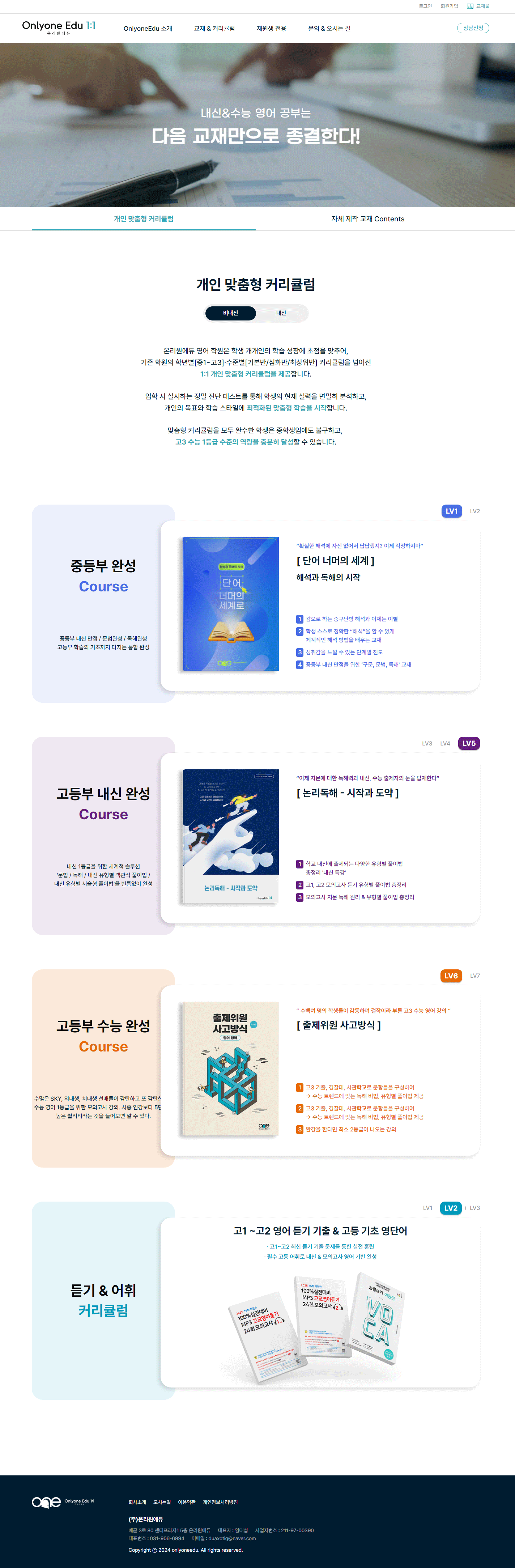 온리원에듀 홈페이지제작 포트폴리오 2