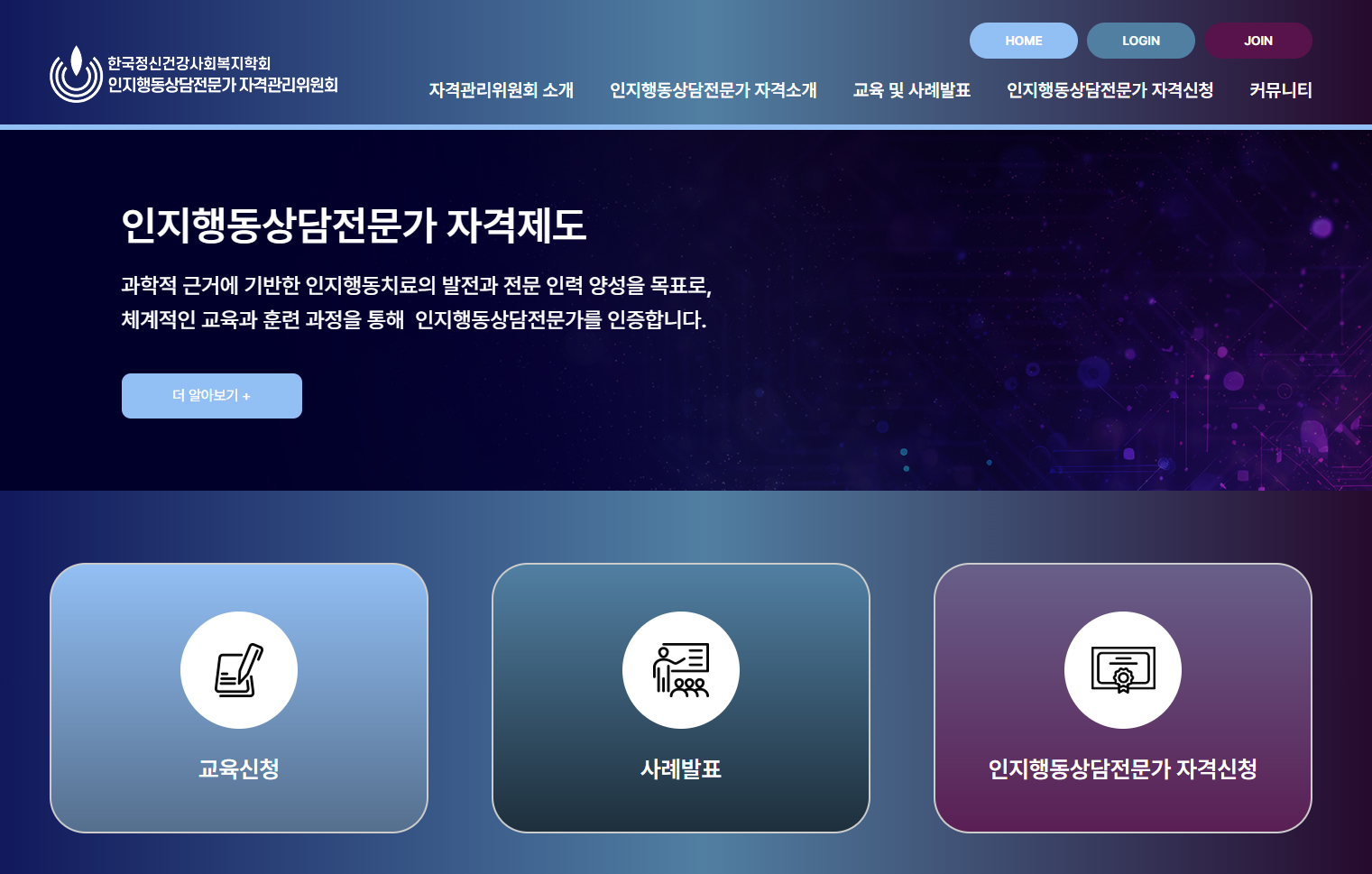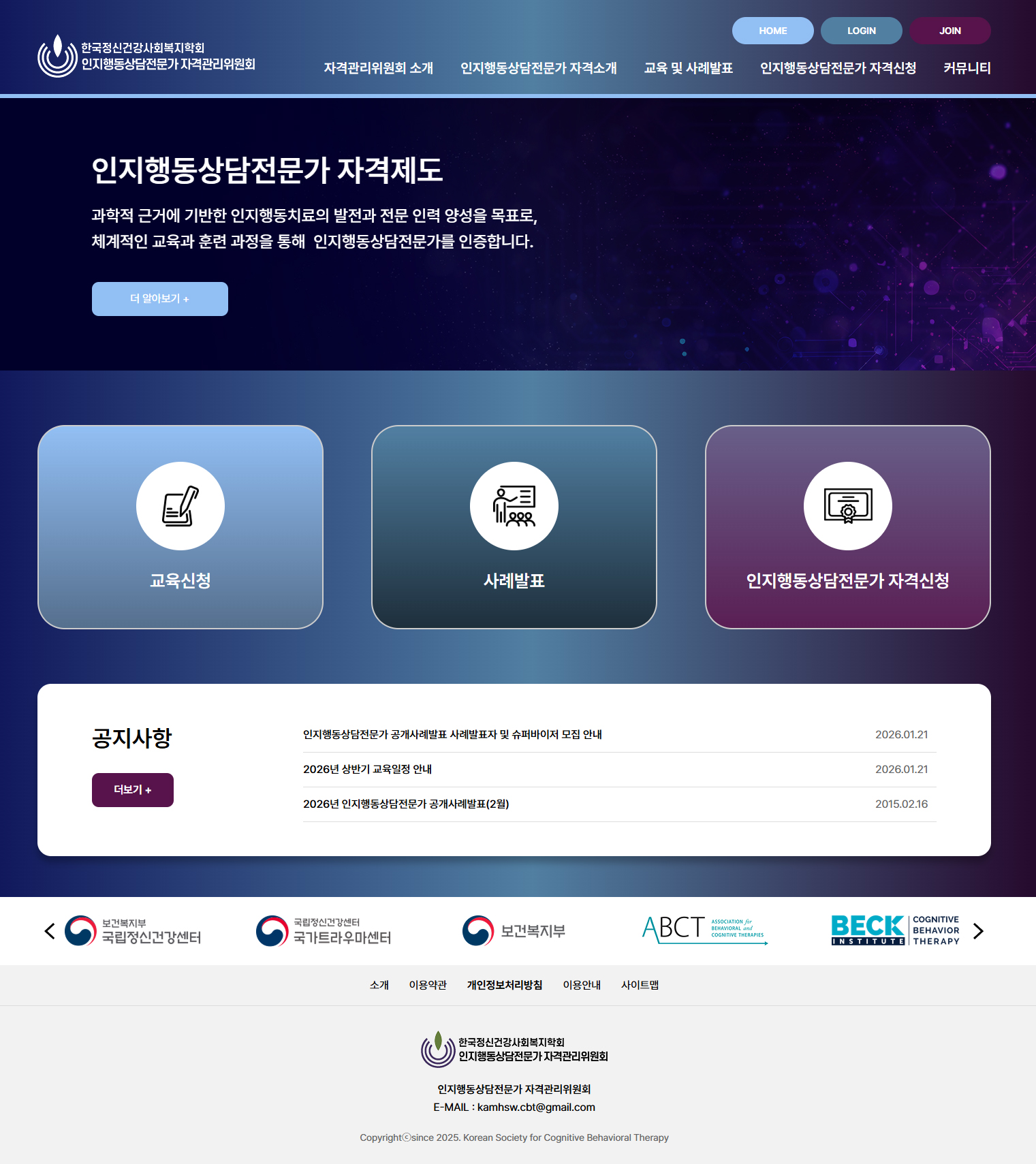 인지행동상담전문가 자격관리위원회 홈페이지제작 포트폴리오